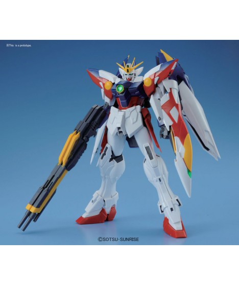 The prototype gundam from which the 5 other gundams were developed in Gundam Wing, makes a new appearance as interpreted by Hajime Katoki for the Endless Waltz manga. Following the same styling as the other Ver EW designs, Wing Gundam Proto Zero has been reproduced with new proportions and utilizes a modified xxx-g frame for construction and can transform into Neo Bird Mode. Iconic weapons including twin Buster rifle, shield with extending nose gimmick, shoulder mounted machine cannons and beam sabers are included. New features include foldable canards on shield and redesigned thruster wings that can unfold further outward. Display stand with standing and sitting versions of Heero Yuy are included.