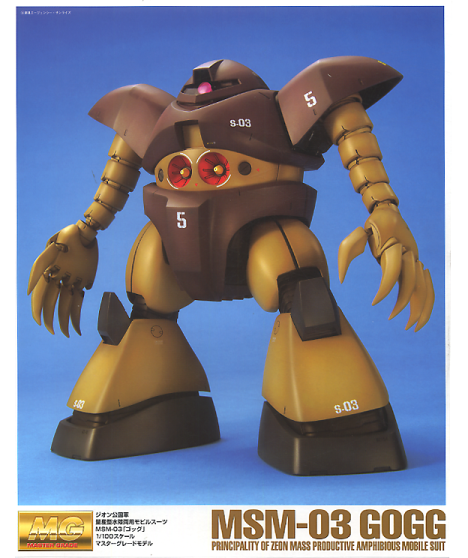 Finally, a Master-Grade kit of the MSM-03 Gogg, Zeon's mass production amphibious MS! Superb design and tooling by Bandai mean that your Gogg, when built, will be able to stand in just about any pose you might have seen in the Gundam anime! Bandai's 'inner frame' system is highly jointed, with armor parts laid over top, making those long arms super-flexible