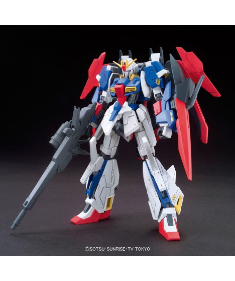 Yuuma Kousaka's Lightning Z Gundam from "Gundam Build Fighters Try" comes with its beam rifle, shield, and beam wings for both sides, as well as effects parts. Molded in white, two shades of gray, black, yellow, red and blue, it comes with foil stickers for the markings.