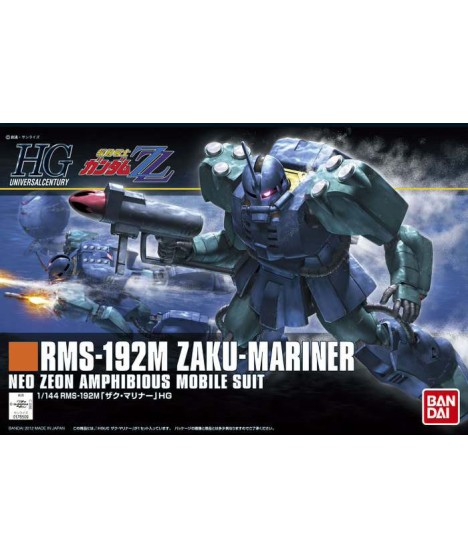 Giant fighting robots that can swim? Yes, indeed the new Zaku Mariner is an Amphibious Mobile Suit which means this huge piece of machinery is designed to get wet. The HGUC plastic model verison of this Gundam is molded in color and comes with foil stickers a wire accessory, and plenty of marking stickers!
