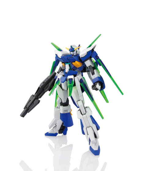 The coolest Gundam AGE kit of all? Many think so. The AGE-FX comes with that clear ring you see in the pictures which allows the many effect parts to be placed in different positions. The AGE-FX also has a removable Core Fighter and carries that large Bazooka and Rifle for when he needs it.