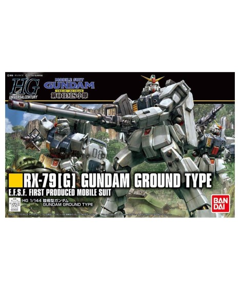 Here comes the HG Gundam Ground Type as seen in "Mobile Suit Gundam: The 08th MS Team"! Its exterior armor parts have been newly molded to recreate the unique look of the Ground Type, including the asymmetrical chest piece. It also features increased mobility, allowing you to recreate it posing on one knee while holding its gun with both hands, and other impressive poses seen in the anime series! The 180mm canon is newly molded, and can be stored inside the wepaon container by replacing certain parts. [Includes]: 180mm canon (x1), Beam rifle (x1), 100mm machine gun (x1), Beam saber (x2), Weapon container rack (x1), Shield (x1), Foil sticker sheet, Marking sticker sheet. Data primei aparitii: 05.09.2019