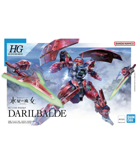 The red-armored Darilbalde from "Mobile Suit Gundam: The Witch of Mercury" now joins the HG model kit series from Bandai! The brilliance of the shell unit is expressed with clear parts and stickers; beam parts can be attached to the hands by changing the tips from the elbows of both arms. The beam javelins are separated at the center, and can be used as individual weapons. In addition, the effect parts on both ends can be attached and detached. Lots of optional parts, such as a base for display, are included too.