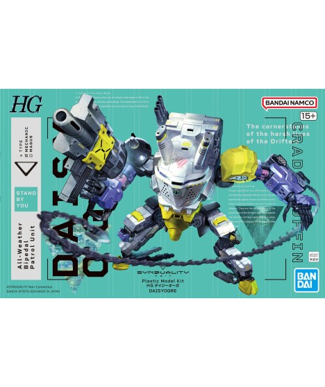 The Daisy Ogre from the upcoming TV anime "Synduality," exploring the theme of "passing" between humans and AI, is now part of Bandai's HG model-kit lineup! Piloted by the main character Kanata, the Daisy Ogre is equipped with its characteristic weapons and various gimmicks. The cockpit and coffin are modeled in detail, and equipped with slide and opening gimmicks; figures of Kanata and Noir are included. Long type chain parts are included, and you can replace parts to display it when the saw chain is injected. Multiple axes of movement are built into its uniquely designed legs; parts to change the shape of the legs to display it in walking state and roller dash state are included too. A display base and stickers for the markings are also included.