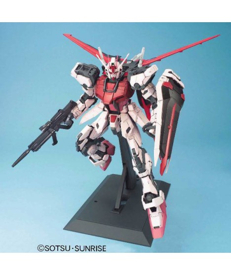 Gorgeous! Bandai's Perfect Grade line continues with Gundam Seed's "Strike Rouge," superbly molded in coloured plastic, with the same fantastic construction quality demonstrated in previous PG kits. A whopping number of parts are included in the typically-large (and heavy!) box -- besides the Strike Rouge, there are parts included for the Skygrasper and Aile Striker! Metal-plated parts (in pink!) are included for the Strike Rouge's custom weapons. Screws, springs, fabulous Gundam Stickers and dry-transfer decals are included; two construction manuals (one for the Strike Rouge, one for the Skygrasper and Aile Striker) are included to walk you through the building of all three models. An "instruction manual" is also included for those who like to paint their Gundam models (of course it doesn't need to be painted), and also for indicating precise locations of the markings.