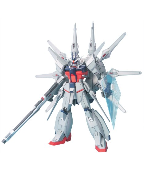 The very impressive Legend Gundam, from "Gundam Seed Destiny," is molded in colored plastic and all the parts snap together for easy assembly. Polycaps are included for joints. A die-cut clear card featuring pilot Rey Za Burrel lists his specs; a stand to hold the card upright is included in the box.