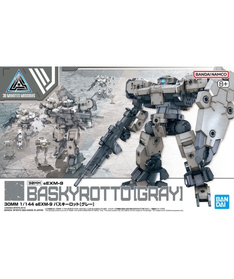 Bandai brings us the Vaskyrot of the Earth Allied Forces -- the newest member of their "30MM" (30Minutes Missions) model-kit lineup! The Vaskyrot is equipped with the most 3mm joints in the history of the 30MM lineup, for more expandability than ever before! Its backpack with a built-in C-type joint can be expanded too. A rifle and shield are included; the shield is equipped with multiple 3mm joints on both sides. Although the Vaskyrot has massive proportions, it's flexible enough that it can kneel on one knee; a newly designed RoiRoi drone unit is included too