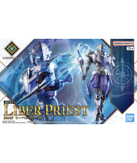 The Liber Priest is the newest member of Bandai's "30 Minutes Fantasy (30MF)" figure-kit series! This lineup allows you to create your own fantasy-based figures and characters! This starter set includes armor and weapon parts in addition to the base "silhouette" (elementary body). The "silhouette," which is the same as that of the Liber Knight, is fully posable like a human body; movable axes are provided on the head and neck for natural flexibility. The new structure of the shoulder joint keeps the body line intact, even in bold poses. The movable parts of the chest, torso, and waist work together with the sliding mechanism at the base of the waist joint to create natural poses. Armor and armed parts are included to combine with the "silhouette" to create the Liber Priest! A new mechanism for attaching shoulder and waist armor via joints on the back allows for flexible movement; the attribute of the Element Core is Water.