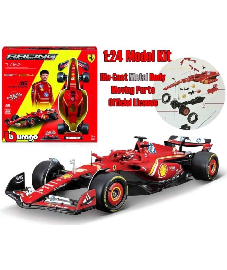 This Bburago model kit lets you create a 1:24 scale model, featuring 45 detailed pieces to carefully assemble. Each component is designed to faithfully reproduce the iconic Ferrari F1 2024 single-seater, ensuring maximum precision. The kit also includes the helmet of the great driver Charles Leclerc.