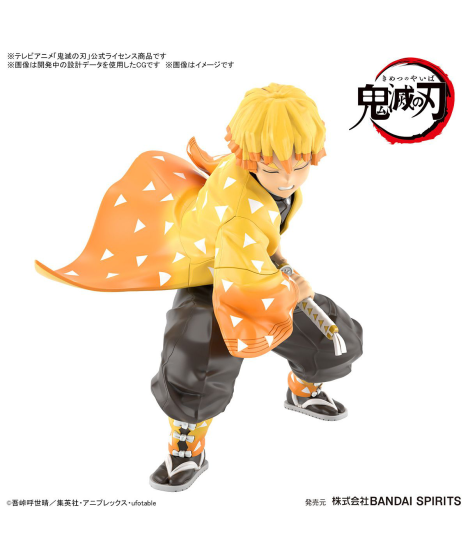 This dynamically posed figure model kit of Zenitsu Agatsuma from "Demon Slayer: Kimetsu no Yaiba" is easy to assemble, even for beginning modelers! It uses pad printing and pre-painted parts to achieve both ease of assembly and high quality. Glue is not needed, so anyone can assemble this kit with ease; pre-painted parts for the pattern and color of his haori and leg ties are included, so you can get a great result just by assembling the kit. The only tool you'll need is a set of nippers! The eyes and eyebrows are reproduced with pad printing, and the ombre of his hair color is painted. The wrinkles in his clothing are carefully sculpted for realism.