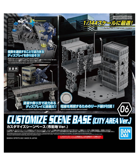 This scenery base from Bandai is ideal for displaying your 1/144-scale models! One building and road parts are included, along with lead wire for the poles. You can create a powerful diorama by combining multiple sets -- order yours now! Note Includes the Customize Scene Base (city area ver.) only. Other kits are sold separately.