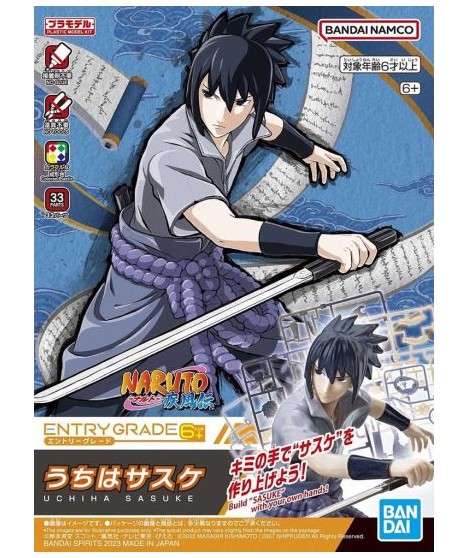Uchiha Sasuke from "Naruto Shippuden" joins the "Entry Grade" figure model-kit lineup from Bandai! The kit consists of just 33 pre-colored parts, making this kit easy and quick to assemble for beginners. The parts can be removed from the sprues without the use for tools, and it assembles without the need for glue, too. Stickers are included too; stickers for three different styles of eyes are included!