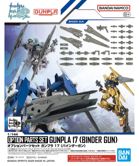 The 17th installment of Bandai's "Option Parts Set" series is the Binder Gun! Use the included joint parts to change it into a variety of weapon modes!