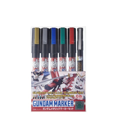 Looking to go to the next level by adding metal detailing to your Gunpla set? This Gundam Metallic Marker Set is perfect for you! This set comes in 6 colours - gold, silver, blue, green, red and black!