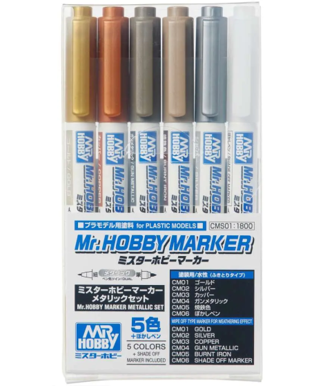 Introducing a new series in the marker series: Mr. Hobby Markers! The first in the series are water-based metallic colors that can be used for inking without damaging the base or material, to express metallic details or to paint a single point of interest, or to create weathering effects by blending with a blending pen.