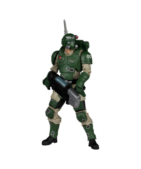 Amongst the storied regiments of Cadia, the Kasrkin are lauded as the elite of the elite. These special operatives are trusted with more potent weaponry, such as high-powered hot-shot lasguns, and equipped with thicker carapace armour than their peers. The Kasrkin are peerless shots and battle tested killers - disciplined and professional, they are equal or superior to any unaugmented warrior of the Imperium.- Incredibly detailed 7" scale figure based off the Warhammer 40,000 Franchise- Designed with Ultra Articulation with up to 22 moving parts for full range of posing and play- Includes Plasma Rifle, extra hands, collectible art card and display base - Figure is showcased in Warhammer 40,000 themed window box packaging